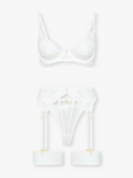 - Pasujący biustonosz, stringi i pas do pończoch oraz paski na nogi